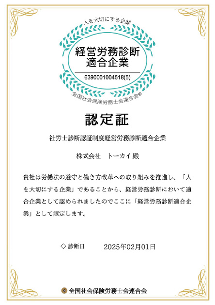 人と社会に貢献し、地球環境にもやさしい企業として株式会社トーカイは、