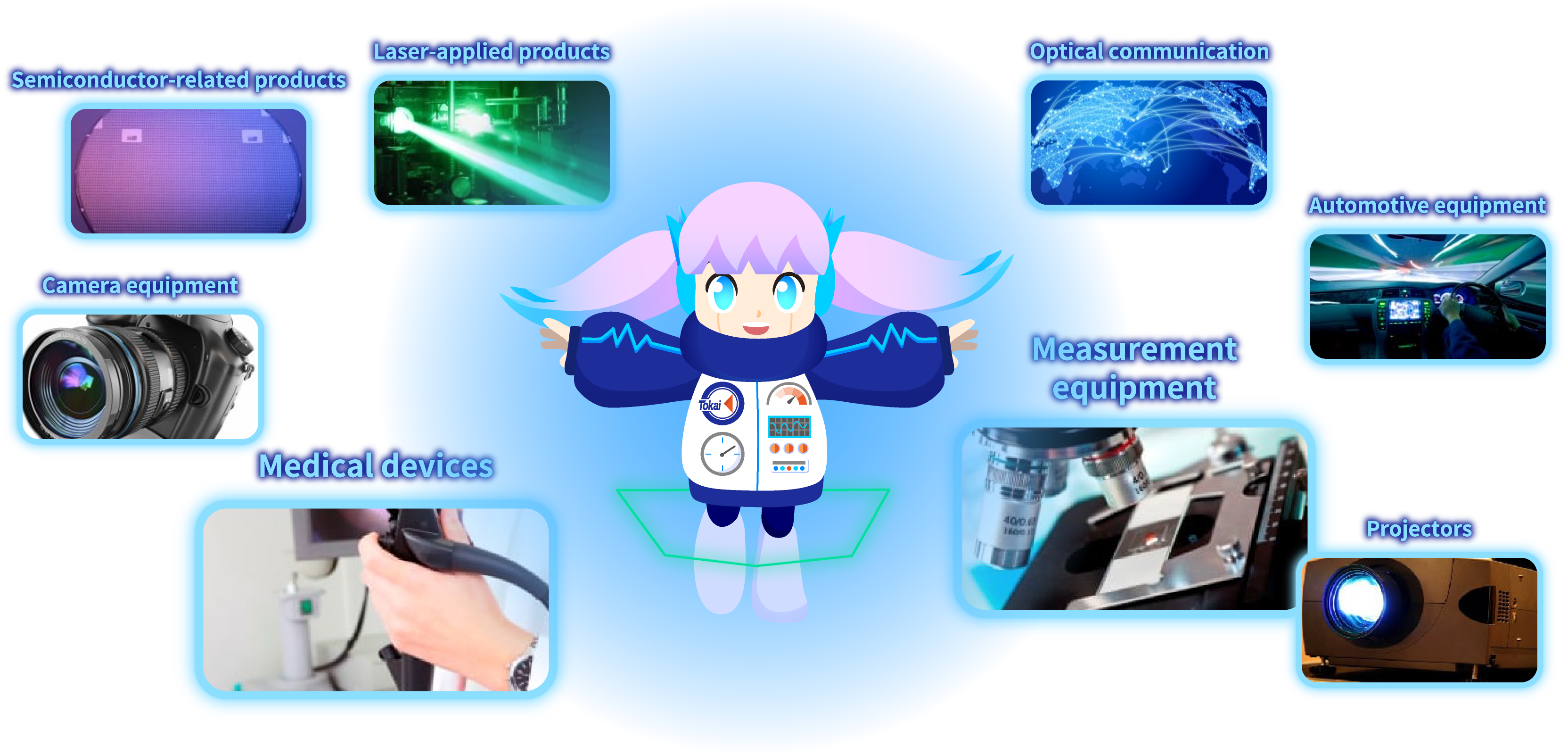 Common examples of this technology include anti-reflection coatings and blue light cut coatings applied to eyeglass lenses, which may be familiar to many people.