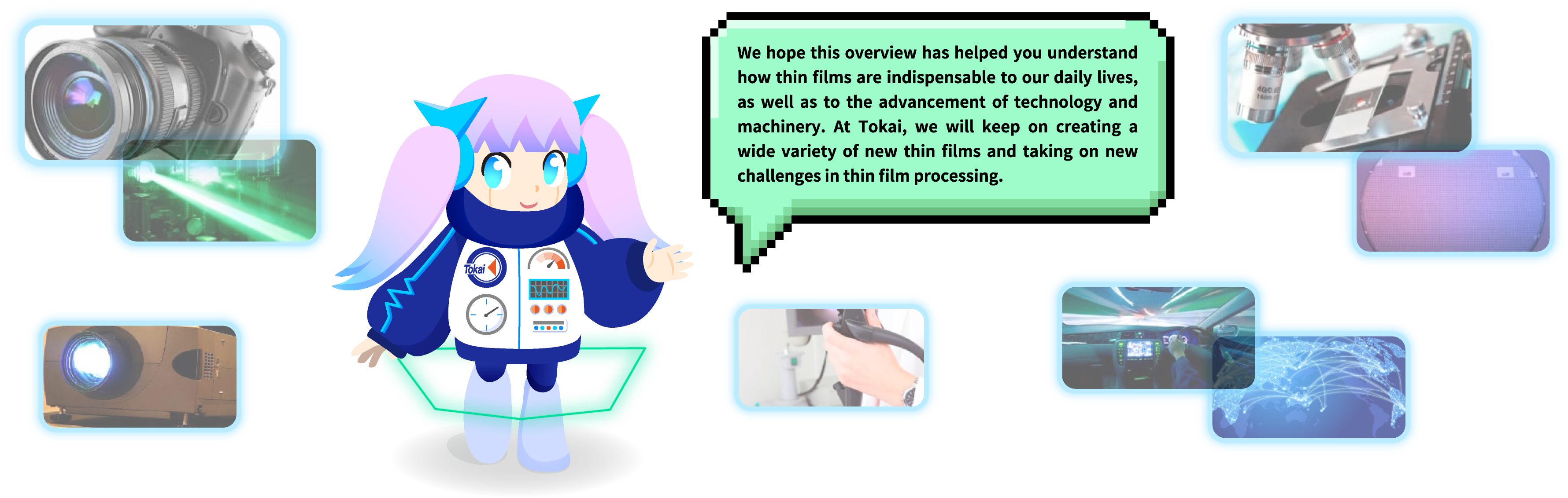 Thin film fulfills a wide range of roles depending on the materials used and their combination with base materials. Below are some representative examples.
