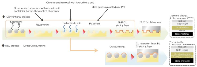 (2)Cost reduction due to metal catalyst (Pd colloid) free.