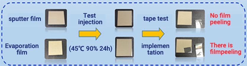 • EB deposition product: The film peels off at the first tape test.