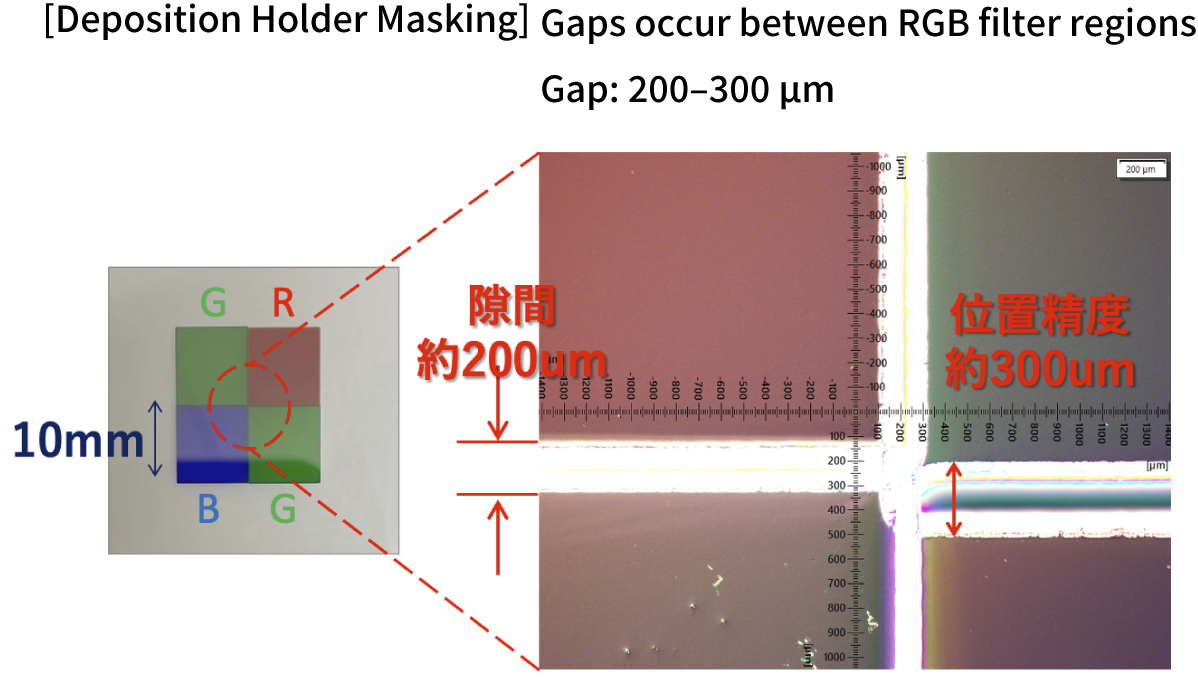 Compared with conventional masking using deposition holders, photolithography provides higher positioning accuracy and minimizes gaps between adjacent filter regions.