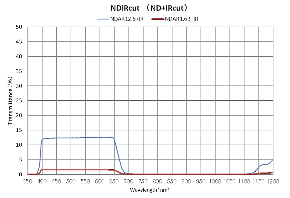 NDフィルターとIRカットフィルタの特性を合わせた膜の加工が可能です。