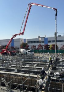 本日は、見たことのない車両が敷地に入って来て・・・聞いてみたら、コンクリートを大量に流し込みする作業らしいです。