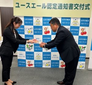 令和7年10月14日付で、山形労働局より「ユースエール認定企業」として認定されました。