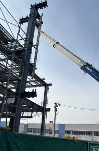 先週の投稿で、鉄骨が建ちました!と伝えてまだ1週間しか経過していないのに、すぐそこまで鉄骨がやってきました。