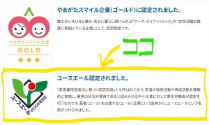 11月28日投稿で、お知らせしましたが、弊社は、ユースエール認定を受けました。