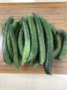 また、当社スタッフTさんの畑から採れたて新鮮野菜(なす・きゅうり・空心菜などなど夏野菜)が毎日届くんです。