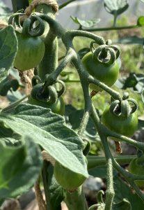 とまとは実が付きだしました。もっともっと成長して大きくなって欲しいものですね。あっ、これはミニだった。。