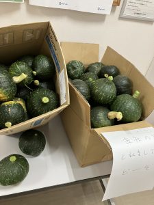 本日、収穫したかぼちゃは、廊下に置いて、従業員の食卓へ・・自然のめぐみに感謝です。ご馳走様で~す。