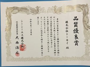 表彰は、技術と経験により高品質な製品供給を認めていただいた事によります。