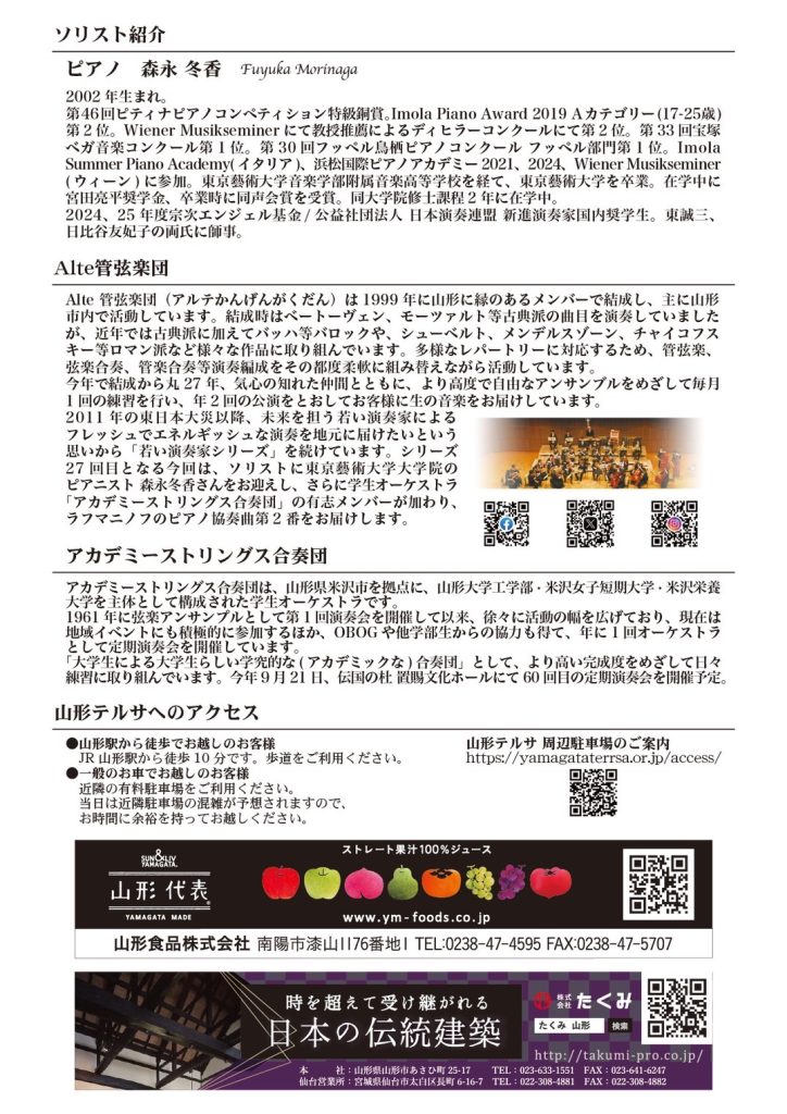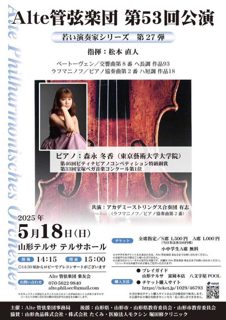 このたび、当社従業員 が所属する「Alte管弦楽団」が下記のとおり演奏会を開催いたします。音楽活動を通じた地域貢献・文化振興の一環として、ぜひ多くの皆さまにご来場いただければ幸いです。