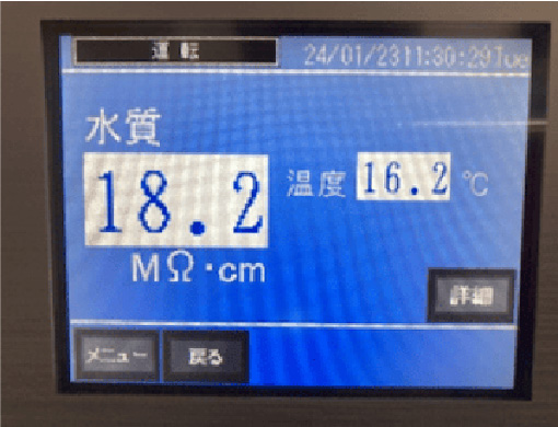 また、当社では通常の純水と比べより純度の高い”超純水”を洗浄機に使用しております(比抵抗値18.2MΩ)。