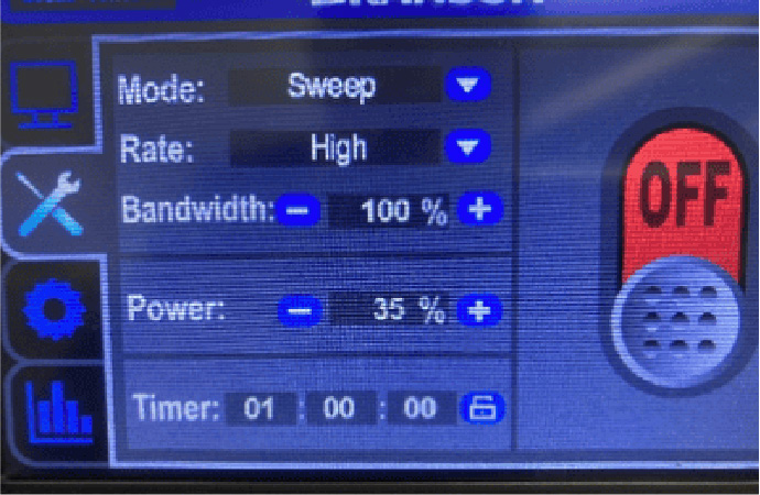 また、周波数を±1kHzの幅で変動させるスイープ機能を搭載しております。スイープ機能はエネルギー分布と洗浄性を向上させるランダムな波長パターンを生み出し、より優れた洗浄を可能にします。