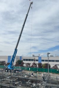 前回のお知らせ、地鎮祭から・・・で、さらに時間が進み、工事関係者様のおかけで無事に、安全に、順調に、鉄骨の柱を建てるための、足場組みが完了し、次のステップへと進んでいる様です。